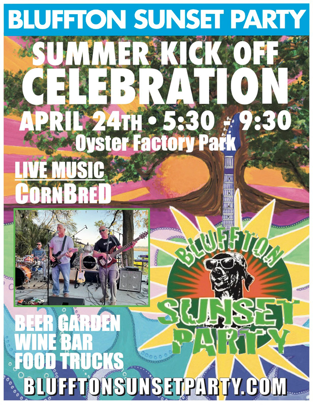 Bluffton Sunset Party Summer Kick Off! Share on Facebook (Opens in new window) Facebook Share on X (Opens in new window) X Share on Bluesky (Opens in new window) Bluesky Share on Reddit (Opens in new window) Reddit When Apr 24th, 2026 5:30pm - 9:30pm Where 55 Wharf St.BlufftonSC29910 Share on Facebook (Opens in new window) Facebook Share on X (Opens in new window) X Share on Bluesky (Opens in new window) Bluesky Share on Reddit (Opens in new window) Reddit