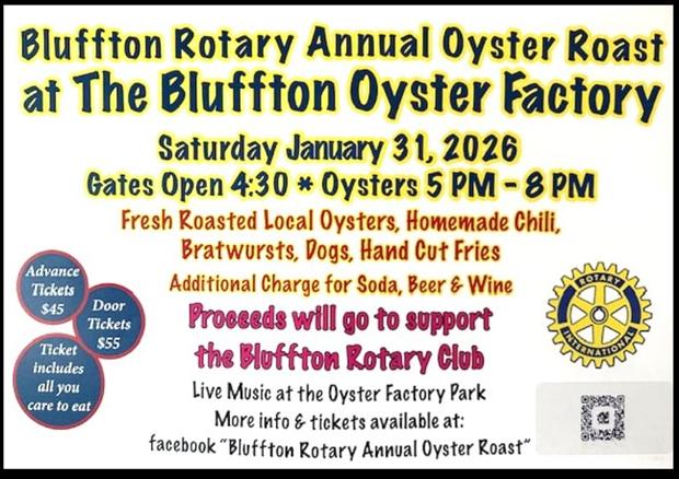 The Rotary Club of Bluffton Annual Oyster Roast is rescheduled for Friday, March 6th.